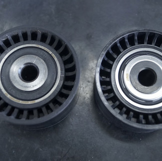 ベルトテンショナーとアイドルプーリーも交換です。本来同時交換なんですよ。新旧並べて…
