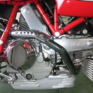 エンジンは空冷900SSのLツイン。割と大きなオイルクーラーはハイパワーの証。
