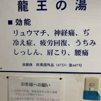 男湯は龍王の湯と言い、こういう効能。ラジュウム泉で硫黄臭は無し。外にボイラーの煙突がありますが、それはサウナ用で、小さなサウナがあります。