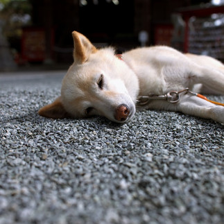 前回は暑すぎて社務所の中でお昼寝してて遊んでくれなかったシロちゃん♪