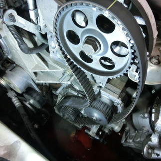 クランクシャフトとカムシャフトをベルトで繋ぎ、それぞれがそれぞれの動きを共有しているもの。