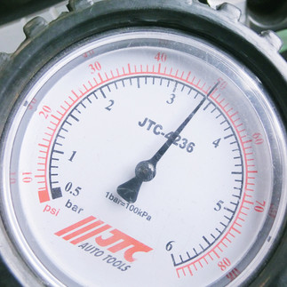 漏れのチェックです。空気圧を高めに入れて、漏れを確認します。